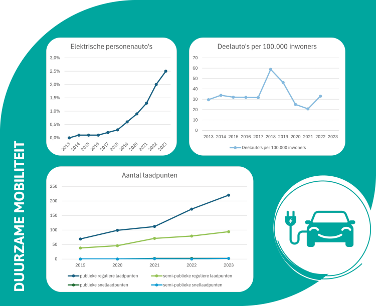 Veel auto's en busjes worden elektrisch. In Zutphen kun je een laadpaal aanvragen als je een elektrische auto hebt en geen oprit, om te zorgen dat er genoeg oplaadpunten zijn. Als je wel op je eigen terrein een privé-laadpunt wil, zijn daar leningen voor, zodat je het niet in een keer hoeft te betalen. In Zutphen is ongeveer 2,5% van de auto's een elektrische auto. Landelijk is dat 6,1%.