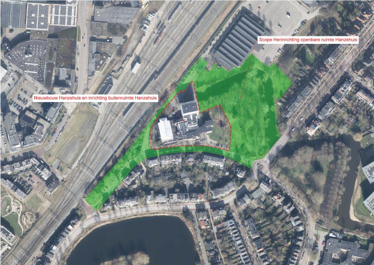 - Het schetsontwerp voor de openbare ruimte gaat onder andere over de straten en de parkruimte rondom het Hanzehuis.