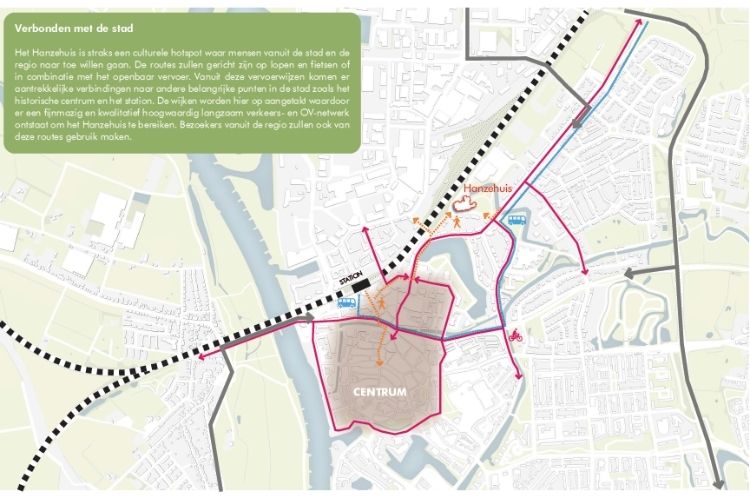 Op deze afbeelding ziet u hoe het Hanzehuis verbonden wordt met de stad: